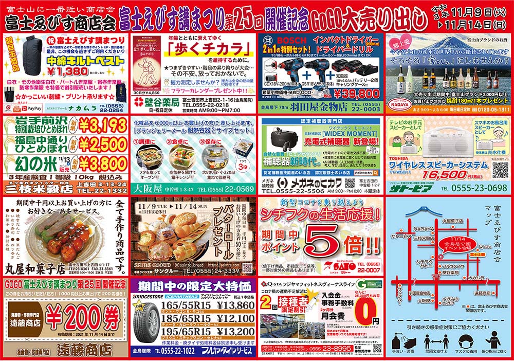『富士えびす講まつり・GoGo25th えびす!開催記念!』 富士ゑびす商店会、富士えびす講祭り第25回開催記念、GoGo25大売り出しを開催します。
